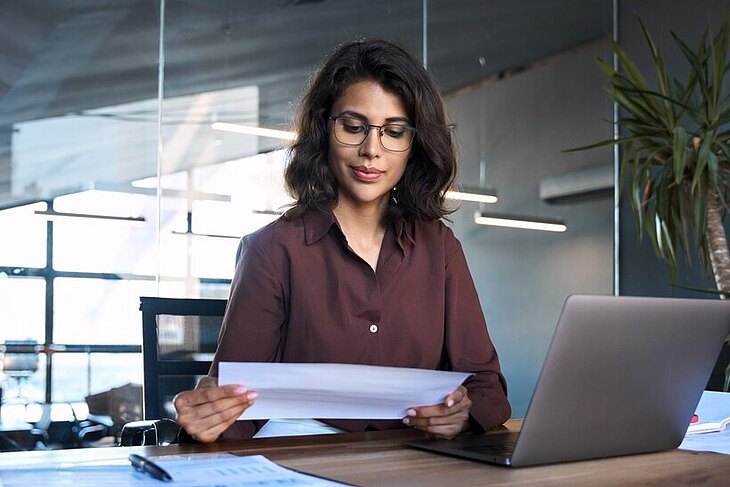 Frau bereitet Unterlagen für eine Ausschreibung vor